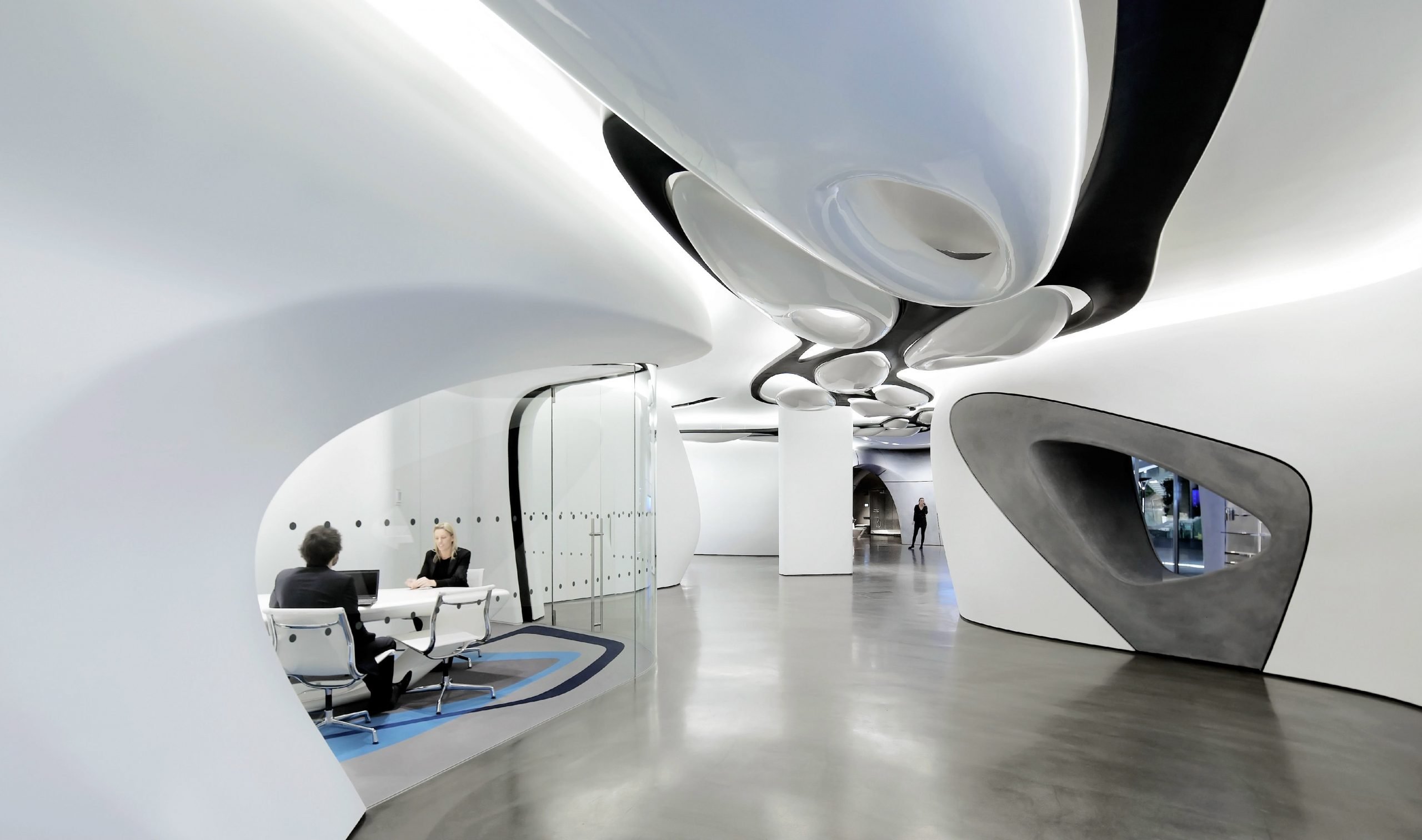 L’architettura di Zaha Hadid trae ispirazione dalla tettonica, concependola come strati geologici sovrapposti che generano all’interno delle cavità abitabili. Una sua caratteristica è quella di creare un involucro che sembra scavato nello spazio.